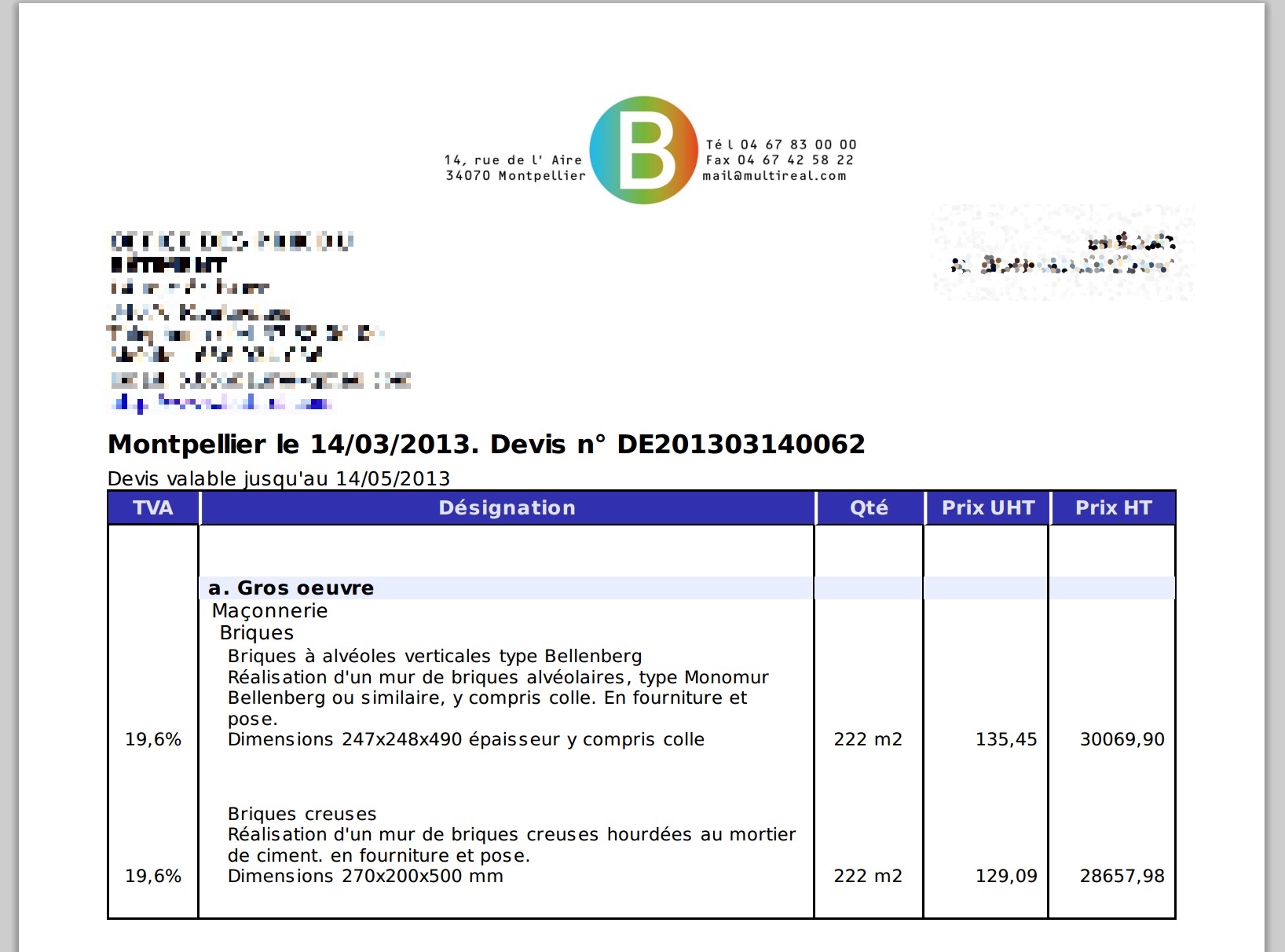 Logiciel de devis/facturation pour les professionnels du Bâtiment avec bibliothèque de prix tous corps d'état intégrée.